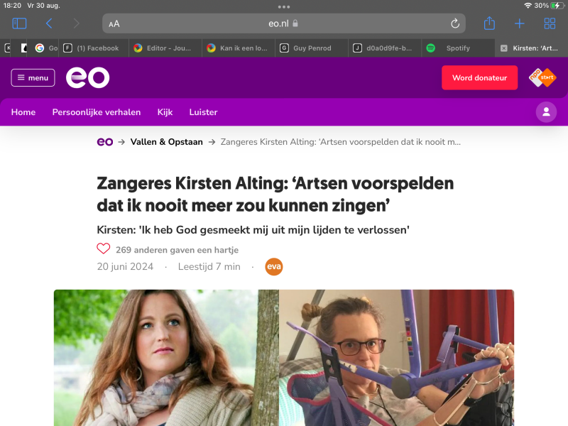 Met haar stem en levensverhaal – soms staand, soms zittend in een rolstoel, met haar hulphond Bindi aan haar zijde – brengt Kirsten een unieke combinatie van kwetsbaarheid en kracht. Haar muziek is een boodschap van hoop, geloof en herstel die mensen diep raakt.